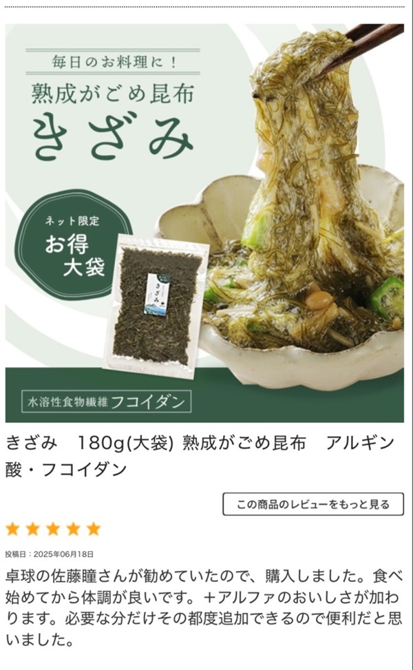 娘の憧れている選手が当店のがごめ昆布きざみをお勧めしてくださりとても嬉しくなりました。